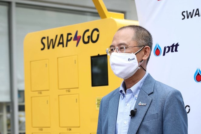 นายนพดล ปิ่นสุภา รองกรรมการผู้จัดการใหญ่นวัตกรรมและดิจิทัล บริษัท ปตท. จำกัด (มหาชน) (ปตท.) เปิดเผยว่า ปัญหาด้านสิ่งแวดล้อมที่นับวันจะทวีความรุนแรงและเป็นความท้าทายของโลกทุกวันนี้ ส่งผลให้หลายประเทศต่างแสดงเจตนารมณ์ร่วมกันในการลดการปล่อยคาร์บอนไดออกไซด์สุทธิให้เท่ากับศูนย์ (Carbon Neutral) และเป็นตัวขับเคลื่อนสำคัญที่ทำให้รูปแบบการใช้พลังงานเปลี่ยนผ่านไปสู่พลังงานอนาคต ที่มีประสิทธิภาพและเป็นมิตรกับสิ่งแวดล้อมมากขึ้น ซึ่งวันนี้ ปตท. ได้เร่งเดินหน้าพัฒนาเทคโนโลยีและนวัตกรรมที่ผลักดันการใช้พลังงานแห่งอนาคต เช่น Renewable Energy และ EV Value Chain ตลอดต้นน้ำจนถึงปลายน้ำ เพื่อให้ประเทศไทยบรรลุเป้าหมายในเรื่องของสิ่งแวดล้อม และตอบสนองให้ทันต่อการเปลี่ยนผ่านตามทิศทางการใช้พลังงานของประเทศ ประกอบกับในช่วง 2-3 ปีที่ผ่านมา การใช้รถมอเตอร์ไซค์กลายเป็นที่นิยมกันอย่างแพร่หลาย จากการเติบโตอย่างรวดเร็วของธุรกิจ Delivery Service และแนวโน้มการใช้ยานยนต์ไฟฟ้าในประเทศไทยก็เพิ่มสูงขึ้นต่อเนื่อง จึงเป็นที่มาของแนวคิดการออกแบบธุรกิจเพื่อเป็นต้นแบบนวัตกรรมด้านพลังงานให้กับประเทศ อย่าง Swap & Go บริษัทในเครือ ปตท. ที่ให้บริการสลับแบตเตอรี่สำหรับผู้ใช้งานมอเตอร์ไซค์ไฟฟ้าแบบไม่ต้องรอชาร์จ เป็นการสร้าง Business Ecosystem ที่เพิ่มศักยภาพการใช้พลังงานสะอาด สู่การสร้างสรรค์นวัตกรรมที่สร้างการเติบโตทั้งด้านสังคม สิ่งแวดล้อม และสร้างมูลค่าเพิ่มทางเศรษฐกิจให้กับประเทศให้เติบโตไปพร้อมกันอย่างยั่งยืน โดยในปี 2564 จะเปิดให้บริการสถานีสลับแบตเตอรี่ จำนวน 22 แห่ง ครอบคลุมทั่วกรุงเทพฯ แบ่งเป็น ภายในสถานีบริการน้ำมัน พีทีที สเตชั่น จำนวน 19 แห่ง และพื้นที่ภายนอก พีทีที สเตชั่น อีก 3 แห่ง ที่พร้อมนำร่องให้บริการลูกค้าในกลุ่ม Delivery Service และมีแผนขยายการให้บริการในกลุ่มลูกค้าอื่น ๆ ในระยะถัดไป
