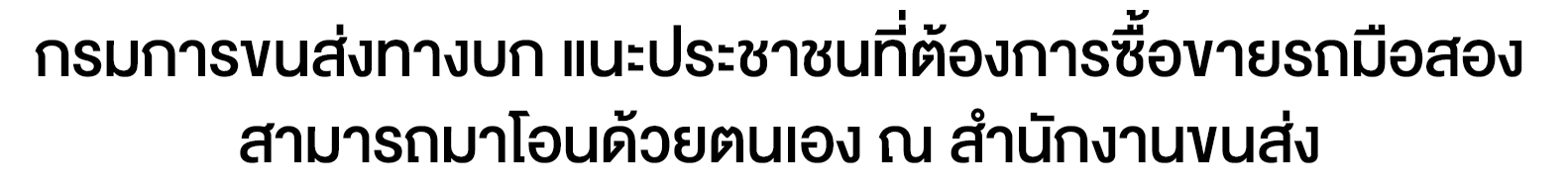 กรมการขนส่งทางบก แนะประชาชนที่ต้องการซื้อขายรถมือสอง สามารถมาโอนด้วยตนเอง ณ สำนักงานขนส่ง เตือนไม่ควรซื้อขายด้วยวิธีการโอนลอยเสี่ยงอาจเป็นรถที่ได้มาด้วยวิธีไม่ถูกต้องตามกฎหมาย