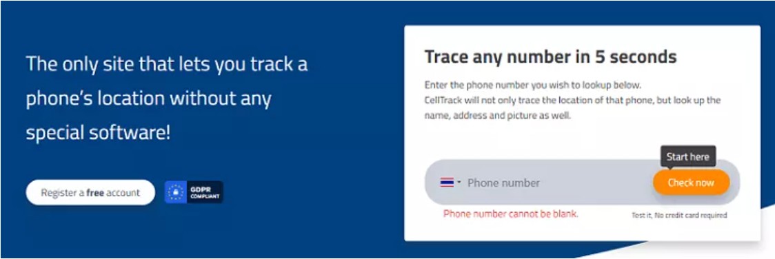 เว็บไซต์ CellTrack สร้างขึ้นเพื่อติดตามตำแหน่งโทรศัพท์มือถือ ใช้งานฟรี ไม่เสียค่าใช้จ่าย โดยจะมีการระบุผ่านหมายเลขโทรศัพท์มือถือ จะมีขั้นตอน ดังต่อไปนี้