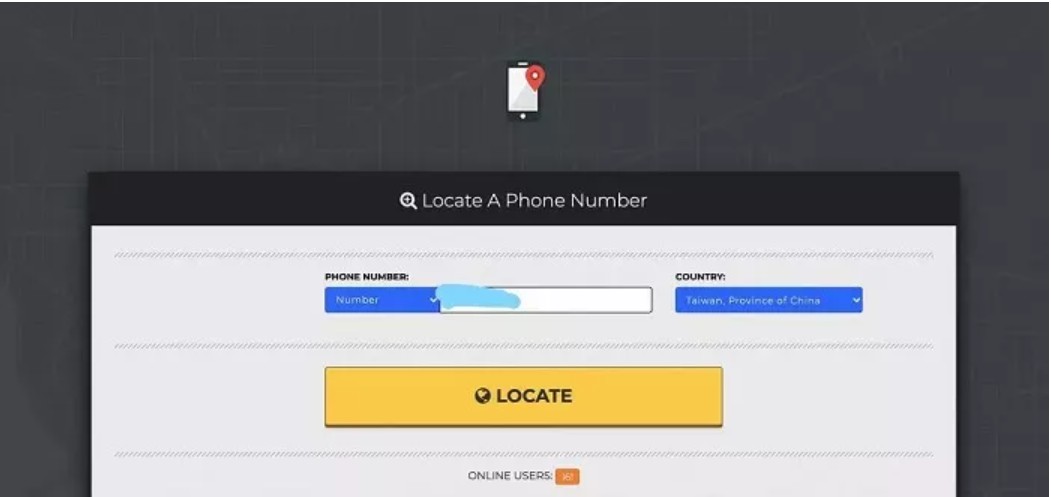 2.ป้อนหมายเลขโทรศัพท์มือถือที่หัวข้อ "Phone number" และเลือกประเทศที่หัวข้อ "Country" จากนั้นกดปุ่ม LOCATE