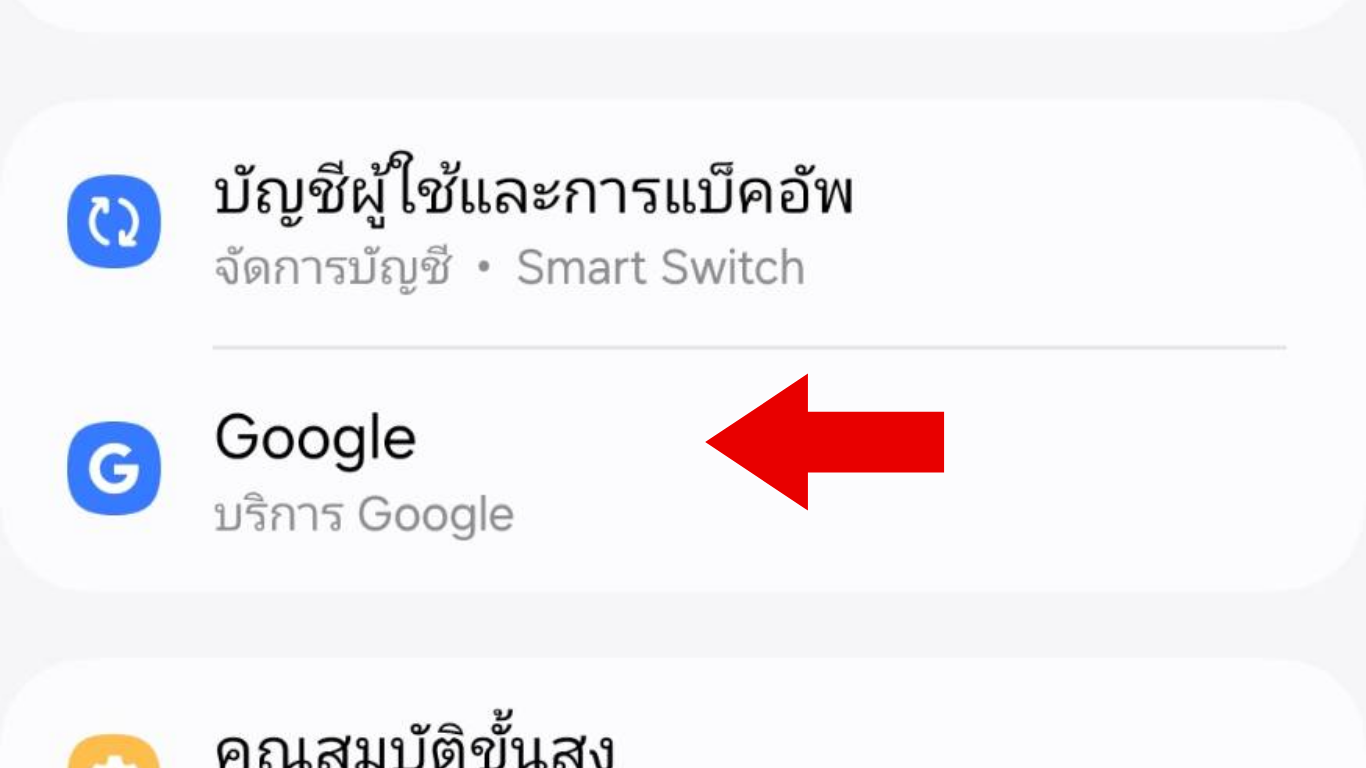 ขั้นตอนแรกนะคะ ให้เข้าไปที่ ตั้งค่า เลื่อนลงกดไปที่ Google